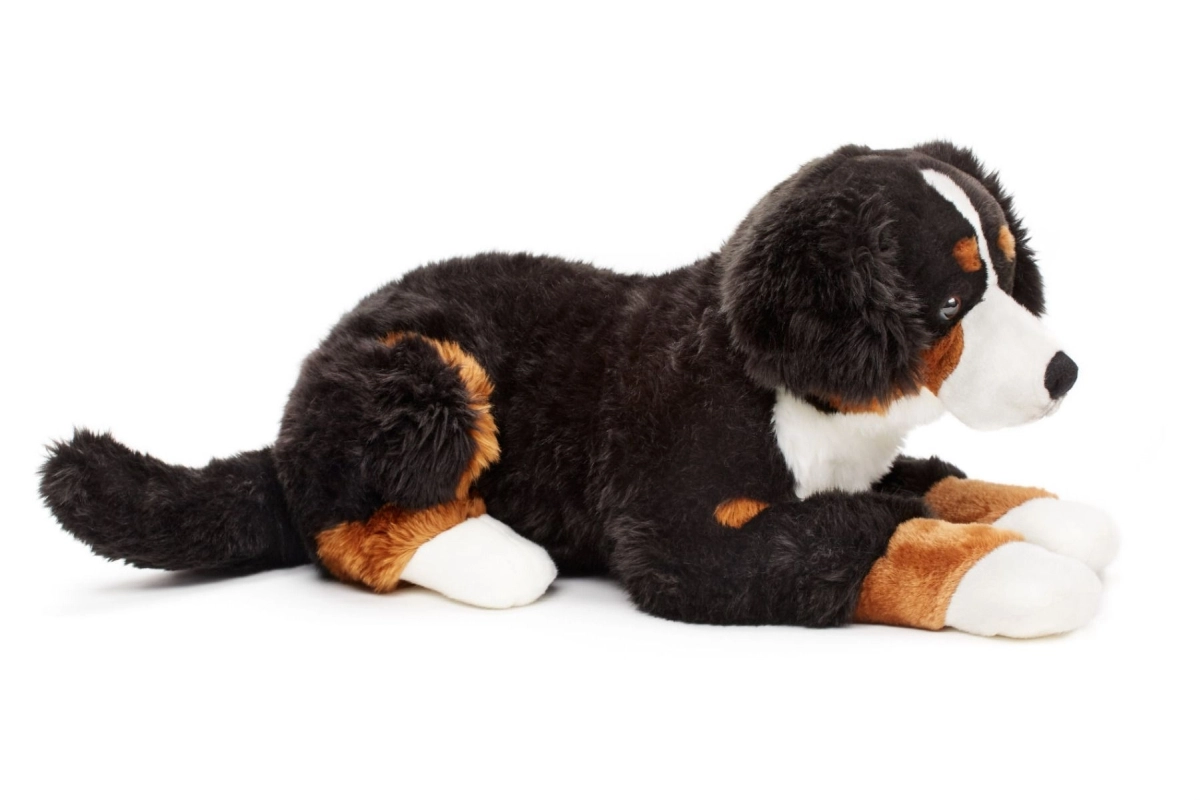 Denne bløde plysbamse inspireret af racen bernsk sennenhund imponerer med autentisk trikolor farvetegning og et sødt udtryk. Takket være den generøse længde på ca. 65 cm (uden hale) er den ideel til kram, som pynt på værelset eller som rejseledsager.