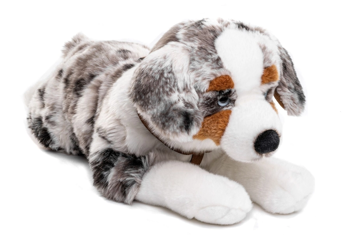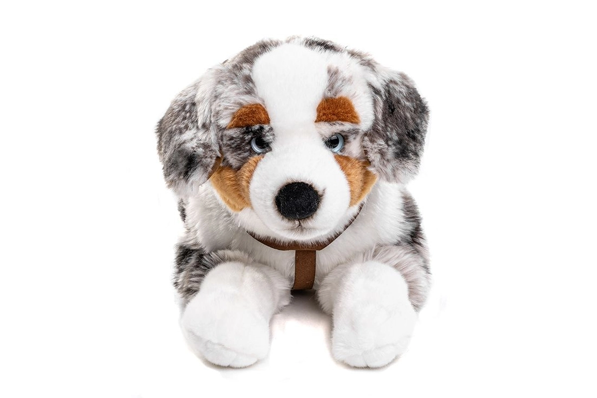 Denne plyssede australske hyrdehund betager med tro detaljer, blød pels og en dejlig krammestørrelse. Den er blød, krammevenlig og sikker selv for de allermindste. I pakken medfølger seler, så din lille dyrepasser kan lufte sin hundeven på fantasifulde gåture.