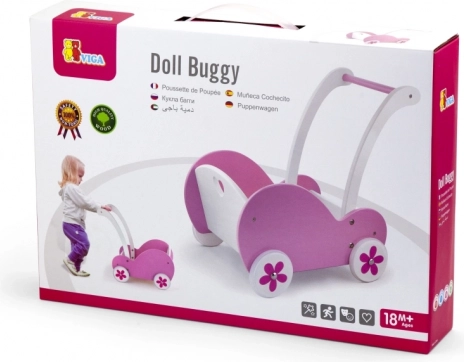 Viga-vognen er egnet til børn fra 18 måneder, hvilket gør den til en perfekt gave til små piger, der elsker at lege med dukker. Takket være størrelsen og robustheden er den ideel som støtte, når barnet lærer at gå.