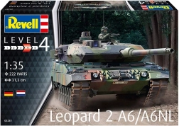 Realistisk plastikmodel LEOPARD 2A6/A6NL til både erfarne og begyndende modelbyggere. Tysk hovedkampvogn af 3. generation i detaljeret udførelse fra Revell. Sættet indeholder ikke maling eller lim; anbefalede nuancer er angivet nedenfor for at opnå et autentisk udseende.