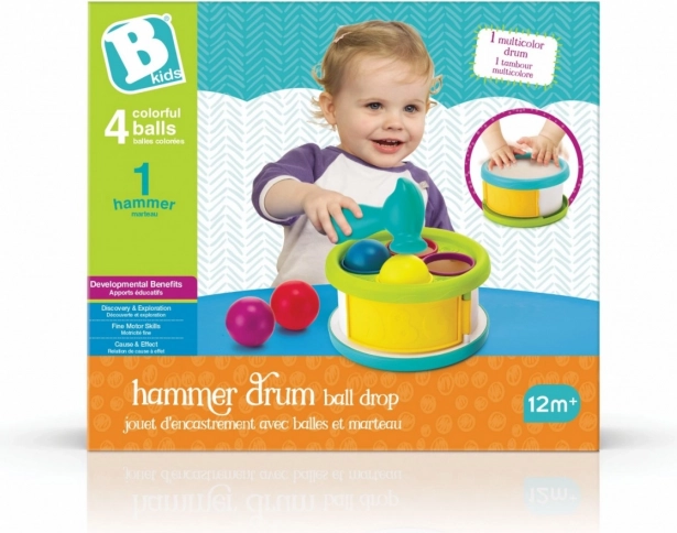 Børnetromme med sorteringsbolde fra B kids tilbyder legende og lærerig underholdning, der understøtter udviklingen af hånd-øje-koordination og motoriske færdigheder hos børn. Legen med farverige bolde og hammer er ideel for små opdagere.