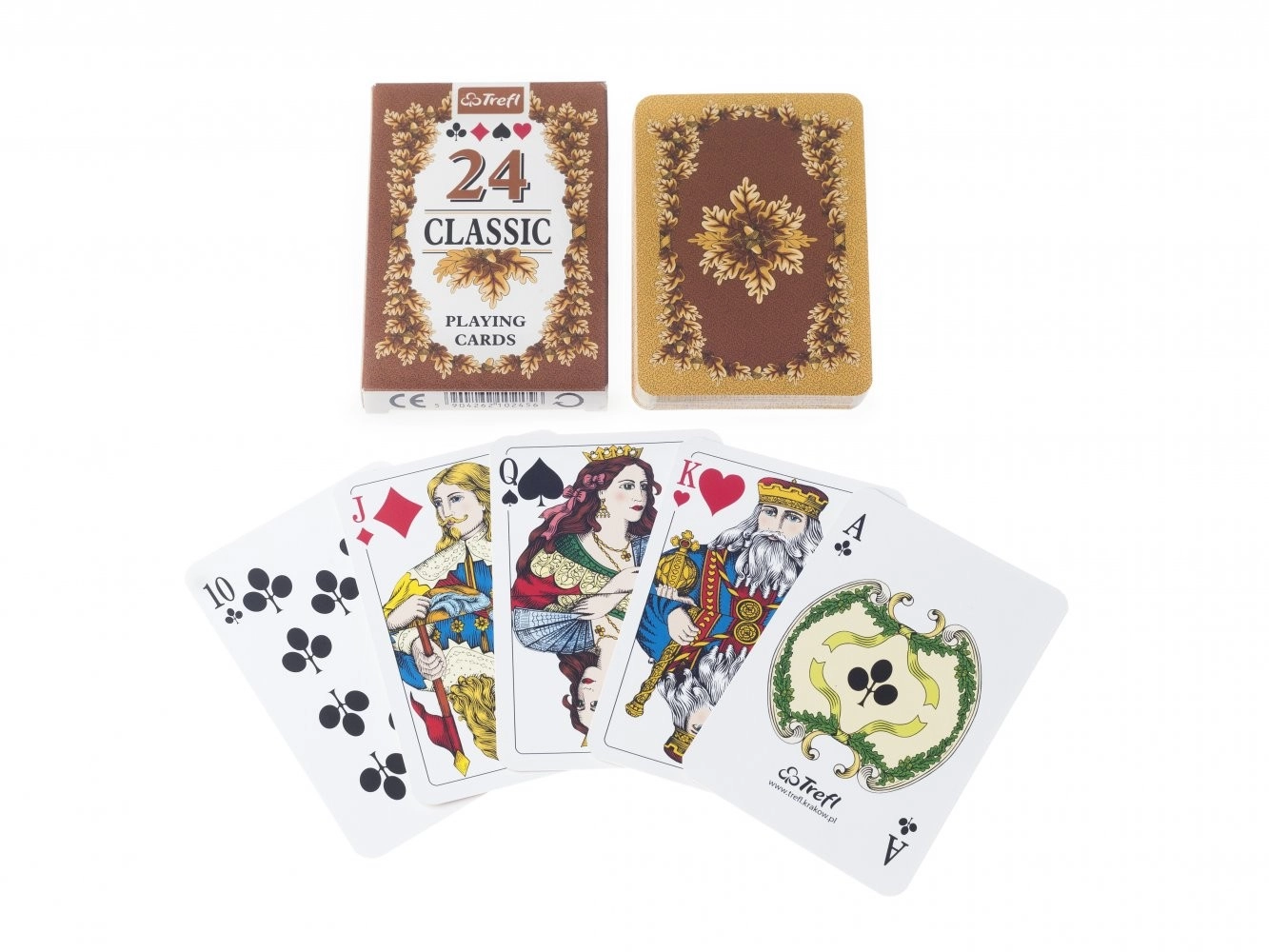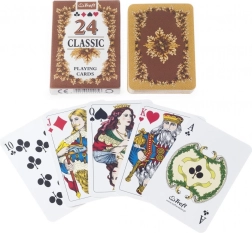 Denne pakke indeholder 24 kort i intervallet 9–es, ideel til spil som Prší, kortere version af Mariáš eller “spillet om Herren”. Producenten er den traditionsrige virksomhed Trefl-Kraków med rødder tilbage til 1947, hvilket garanterer pålidelig papirkvalitet og lang levetid.
