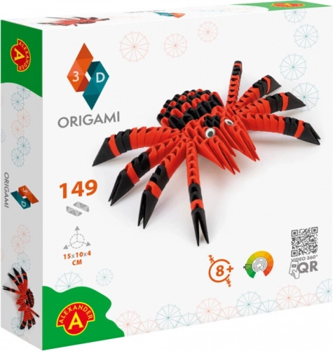 Kreativt sæt Alexander 3D origami edderkop: 149 dele, vejledning og video, uden lim. Udvikler motorik og kreativitet. Sværhedsgrad 3/12, mål 15×10×4 cm.