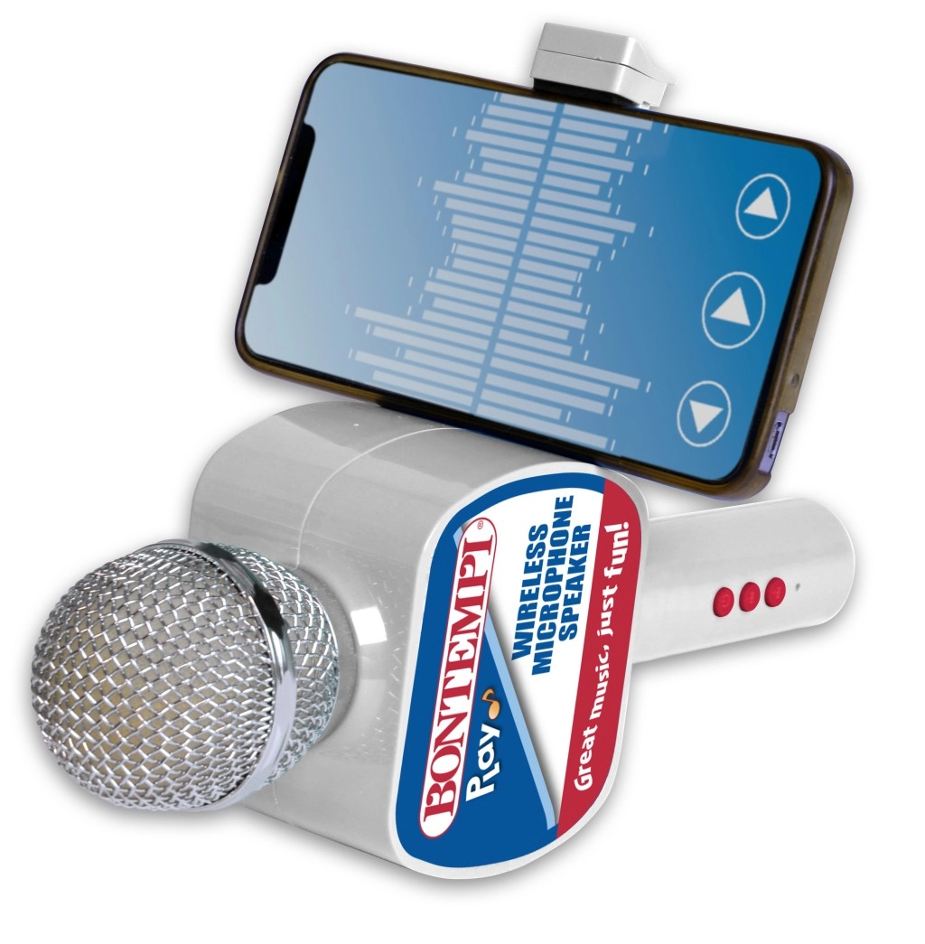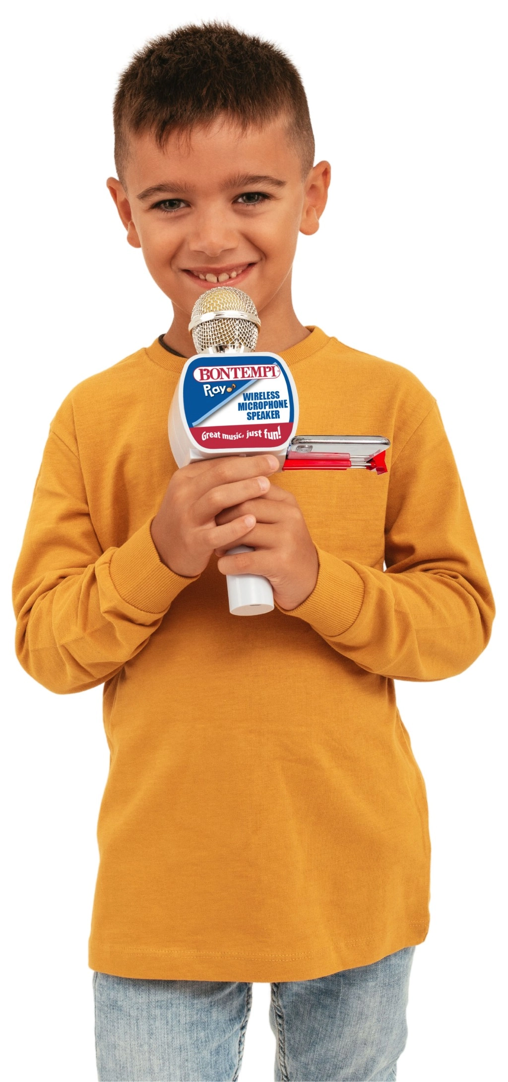Komforten sikres af en integreret telefonholder, overskuelige knapper til styring af lydstyrke og ekko samt et genopladeligt batteri til mange timers underholdning. Ideel også til børn fra 5 år – styrker selvtillid, rytme og sangglæde.