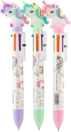En pastel-enhjørning på toppen af pennen glæder både børn og alle, der elsker magiske motiver.