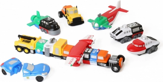 I pakken finder du 21 elementer og 7 færdige køretøjer. Mix, match og skab originale maskiner præcis som fantasien foreskriver.