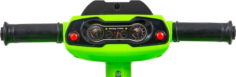 Køretøjet er udstyret med mange faciliteter til små chauffører; under sædet findes et opbevaringsrum, hvor barnet kan gemme sine mest værdifulde skatte og tage dem med overalt.