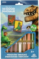 Start med sort sand til konturerne, og fortsæt derefter med de øvrige farver efter skabelonen. De færdige billeder kan opbevares sikkert i de medfølgende omslag. Aktiviteten stimulerer børns kreativitet og giver plads til egne kunstneriske udtryk. Desuden egner den sig til forskellige gaveanledninger.