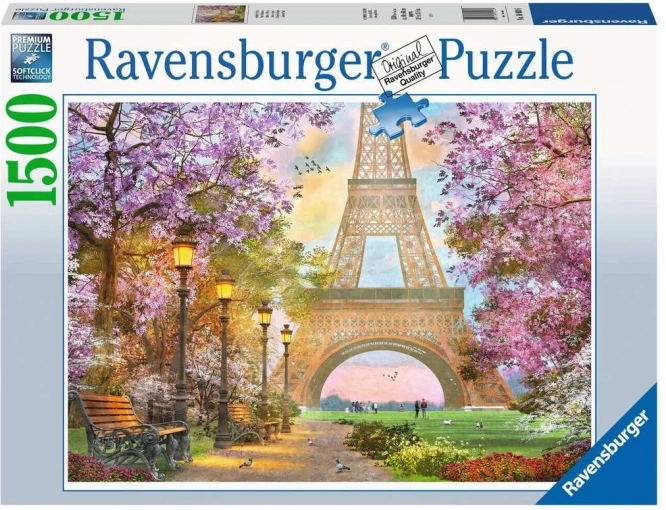 RAVENSBURGER puslespil 1500 brikker – Parisisk romance. Høj kvalitet, SoftClick, hørstruktur. Perfekt til afslapning og træning af koncentration. Alder 14+.