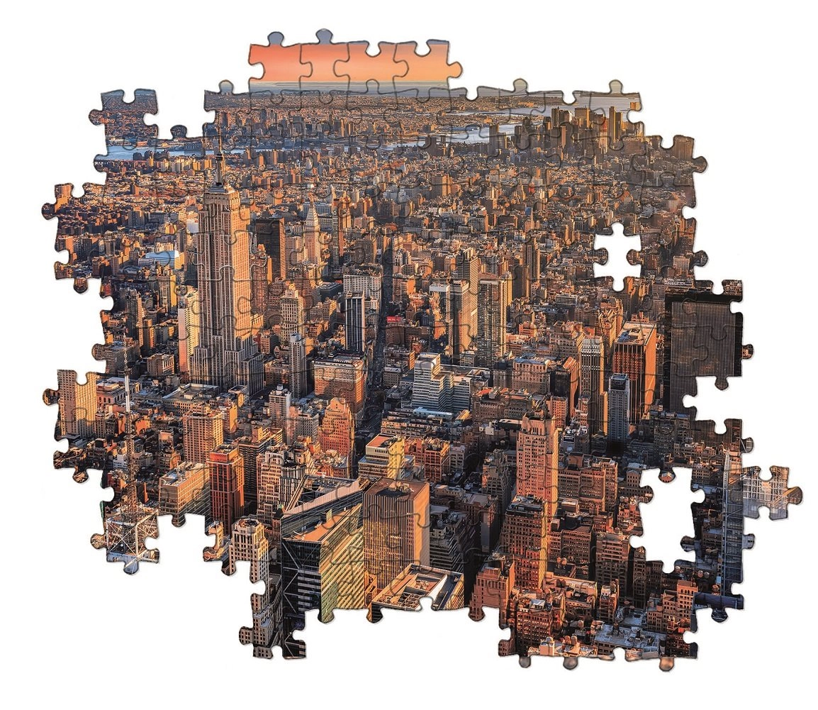Clementoni puslespil New York City 1000 brikker byder på en betagende udsigt over ikoniske skyskrabere ved solnedgang. Nyd Clementonis kvalitet med dette imponerende puslespil!