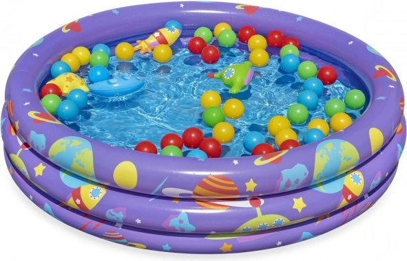Denne farverige pool Bestway Intergalactic er lavet for at børnene ikke kun kan nyde at være udenfor, men også nyde vandet. Med tre ens oppustelige ringe med farverig grafik og kapacitet på 140 liter bringer det masser af glæde.