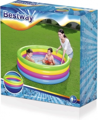 Oppustelig børnepool med regnbuefarvede ringe 157 × 46 cm BESTWAY