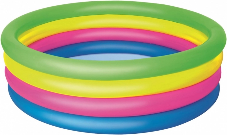 Denne farverige havepool forvandler enhver eftermiddag til sjov og leg. Fire oppustelige ringe danner stabile og komfortable vægge, den bløde oppustelige bund øger komforten ved både siddestilling og leg, og det kvalitetsstærke PVC-materiale sikrer lang holdbarhed.