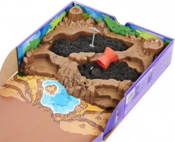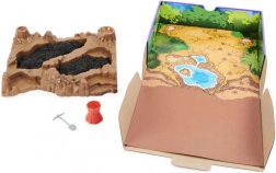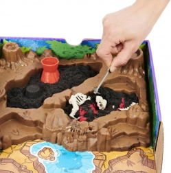 - Speciel bakke med terræn, sort og rødt kinetisk sand, mini-værktøjer, 10 knogler til at samle 3 skeletter