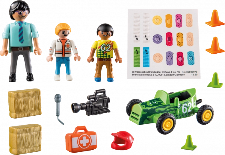 Med Playmobil Redningsaktion oplever du dramatiske øjeblikke under et gokartløb. Føreren mister pludselig kontrollen over bilen, men lægen Mikey er straks på stedet for at yde den nødvendige hjælp. Alt ender godt og giver timevis af leg og fortælling.