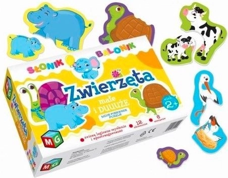 Læringssættet med puslespil “Dyr små og store” er beregnet til børn fra 2 år og understøtter udviklingen af finmotorik og logisk tænkning. Sættet indeholder seks par brikker med unger og deres forældre.