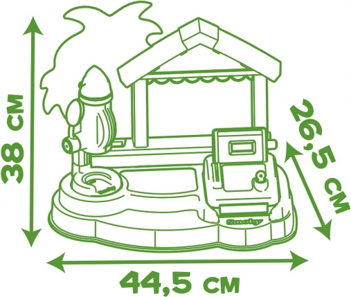 Det righoldige sæt med 38 tilbehørsdele omfatter ismager, vafler og iskugler, isske, frugtspyd, drys, service, bestik og kasseapparat. Takket være de kompakte mål er boden perfekt til haven, parken og stranden – ideel til små værter og værtinder for sommerfester.