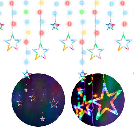 Bring julemagien ind i hjemmet med et LED-lysgardin med stjerner på 2,5 m og 138 LED. Det giver farverigt multicolor-lys, 8 lysfunktioner og netstrøm for kontinuerlig drift uden batterier. Ideel som festlig dekoration og hyggelig aftenbelysning året rundt.