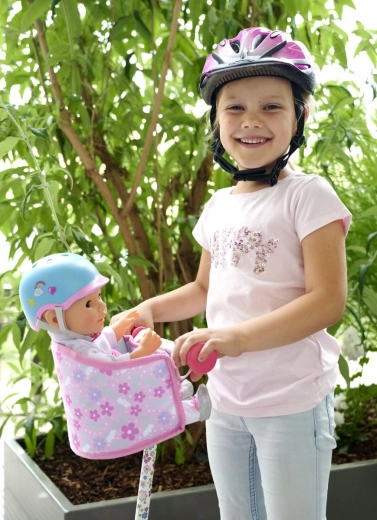 Giv børn en endnu mere realistisk leg på udflugter. Det tekstile cykelsæde til dukker NEW BORN BABY med et fint blomstermønster er designet til sikker og komfortabel transport af dukken på cykel- eller løbehjulsstyr. Den integrerede sikkerhedssele med nem lukning holder dukken sikkert på plads, mens den bløde polstring beskytter mod stød.