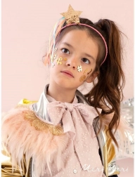 Opdag magien med hovedbøjle Faldende Stjerne. Denne elastiske hovedbøjle er dekoreret med en glitrende stjerne suppleret med livlige bånd. Med sit design vil det blive dit yndlingstilbehør til enhver lejlighed. Produktfunktioner: