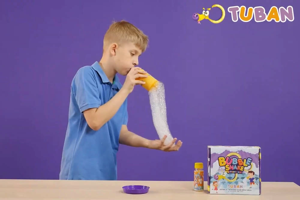 Opdag den sjove boblehslange fra Tuban – et kreativt boblesæt, der forvandler hvert pust til en lang kæde af bobler. Nem at bruge, hurtig at forberede og masser af glæde for børn og voksne.