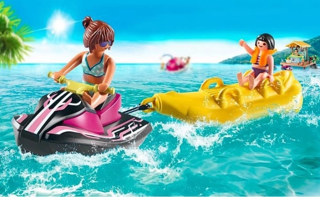 I pakken finder du figurer af en kvinde og en pige, som sammen udforsker vandet på vandscooteren og bananbåden. Pigen er beskyttet af en redningsvest, der sikrer hendes sikkerhed under den vilde tur. Sættet er en fantastisk introduktion til den fascinerende verden af Playmobil Family Fun.