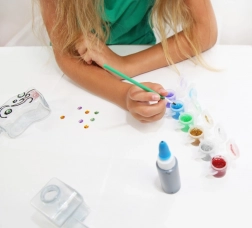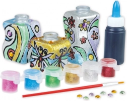 Pakken indeholder 3 vaser klar til at blive pyntet, en pensel, dekorative sten og modellermasse til at optegne former. Børn vil nyde glæden ved at skabe og det smukke resultat, der kan pryde værelset eller glæde som gave.