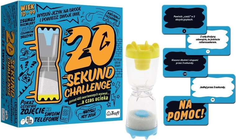 Med 20 sekunders udfordring får du ikke kun sjov, men også spænding ved at løse opgaver inden for en tidsgrænse. Spillerne deles i to hold og udfører under dommerens ledelse en opgave så hurtigt som muligt, hvilket øger presset på modstanderne. Spillet er ideelt til teamwork og garanterer masser af grin.