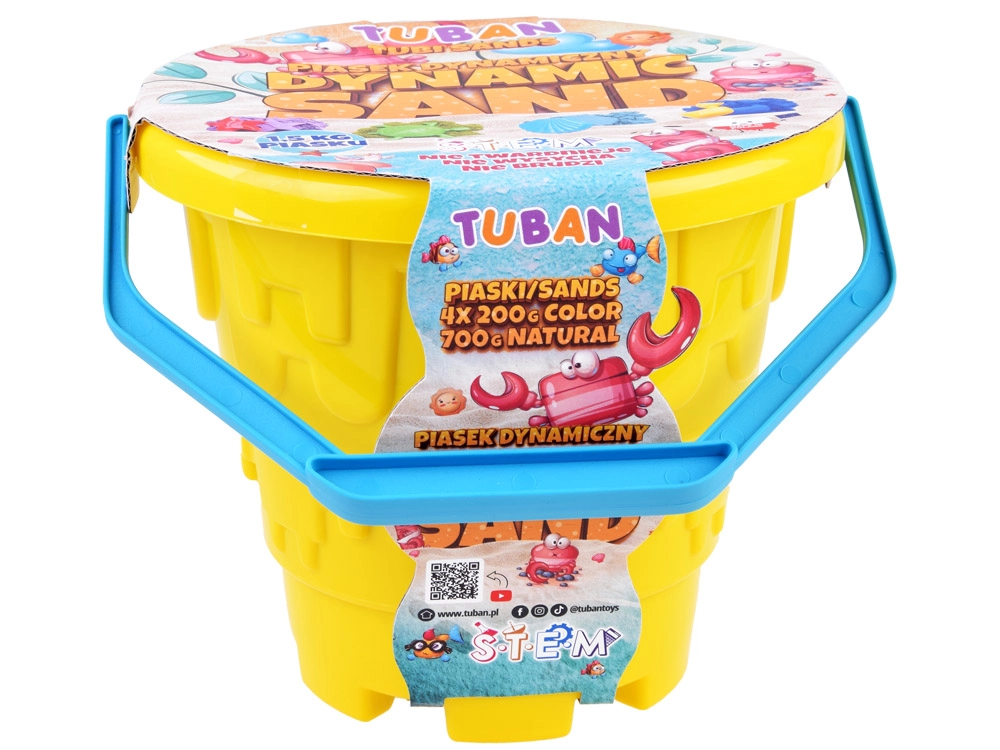 Dynamisk sand Tuban er et særligt sand, der hele tiden er i “bevægelse”. Det har en konsistens, der gør det muligt at flyde frit mellem fingrene. Det egner sig til brug derhjemme, i børnehaven og i skolen. Det sviner ikke på hænderne og er 100% sikkert for små børn.