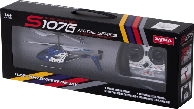 SYMA S107G hører til blandt de mest populære mikrohelikoptere for både begyndere og entusiaster. Metalkonstruktionen i kombination med holdbar ABS tåler styrt godt, mens det forbedrede gyroskop holder helikopteren stabil uden uønsket rotation. Takket være de kompakte mål er modellen som skabt til indendørs flyvning.