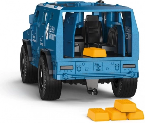 Modellen er fantastisk til at udvikle fantasi og historiefortællende leg – fra bankeskorte til hemmelige missioner. Den blanke lak, GLOBAL SECURITY-printet og de realistiske proportioner gør denne bil til et iøjnefaldende stykke til både leg og udstilling. I pakken kan der medfølge tematiske accessoires, såsom “guldbarer”, for en endnu bedre legeoplevelse.