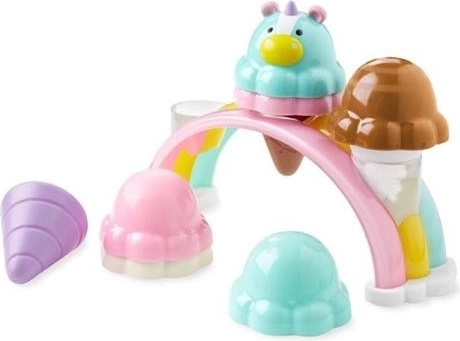 En, to eller hele seks kugler? Med det supersøde is-sæt får børn timer med kreativ leg. 10-delt sæt med magisk farveskift i koldt vand støtter udvikling af finmotorik, hånd-øje-koordination og isbutiks-rolleleg – der medfølger en enhjørninge-kugle, tre kræmmerhuse og et regnbuestativ.
