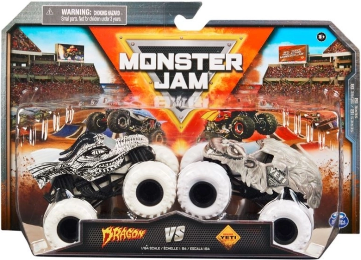 Gør dig klar til episke opgør med de officielle 2-pak støbte Monster Jam-biler i skala 1:64! Hver 2-pak lader dig matche nogle af de mest populære og eftertragtede Monster Jam-monstertrucks som Grave Digger versus Higher Education, Bulldozer versus Racing Stripes, Dragon versus Yeti. Hver Monster Jam 2-pak har fantastiske detaljer og grafik, og der sidder en fører bag rattet. Med officielle BKT-dæk, stiliserede fælge og autentiske chassis indfanger disse slanke og imponerende Monster Jam-maskiner stilen fra deres virkelige modstykker! Hop direkte ud i legen, så snart æsken er åbnet, og lav dine egne stunts og hop inspireret af det, du har set live! Gør dig derefter klar til det ultimative Monster Jam-truckopgør! Saml alle 2-pakkerne til din samling (legetøj sælges separat), og afhold din egen Monster Jam-event med vennerne! Monster Jam-legetøj er den ideelle gave til børn fra 3 år. Oplev head-to-head-dueller med de officielle Monster Jam 2-pakker i skala 1:64!
