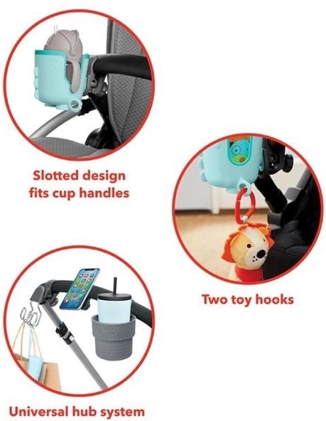 Stroll & Connect drikkeholderen fra Skip Hop sørger for, at dit barn altid har en drik lige ved hånden. Den passer til både kop og flaske, og takket være de universelle kroge passer den også til indkøbsvogne. Ekstra kroge til ophæng underholder ethvert lille barn.