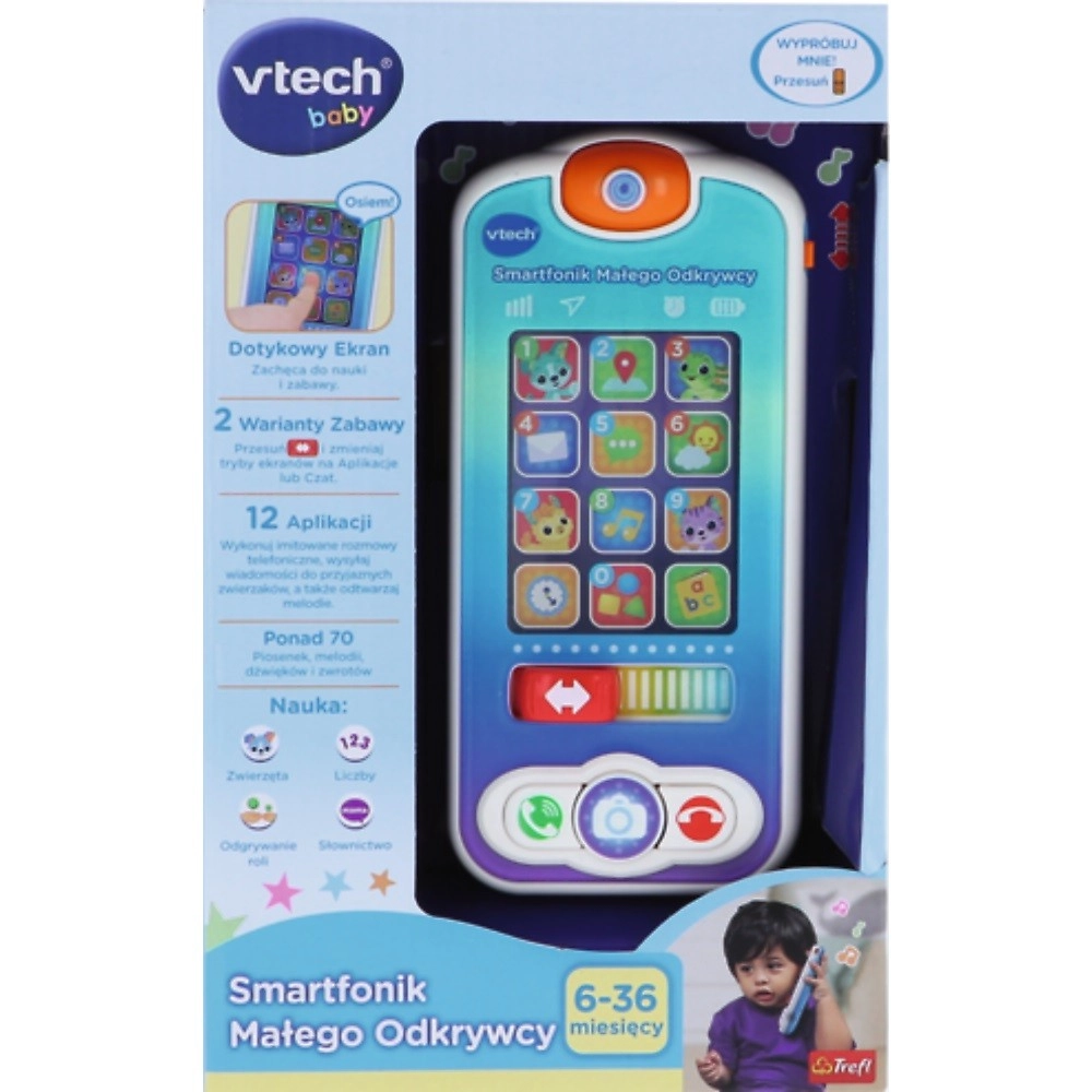 En sjov og lærerig telefon til de mindste, der efterligner en rigtig smartphone. Børn kan ringe til “dyrevenner”, udforske “apps”, lytte til melodier og lære de første ord, tal og former. Med touchskærm og lydeffekter udvikler de finmotorik, lytning og koncentration samt grundlæggende tidlig læring.