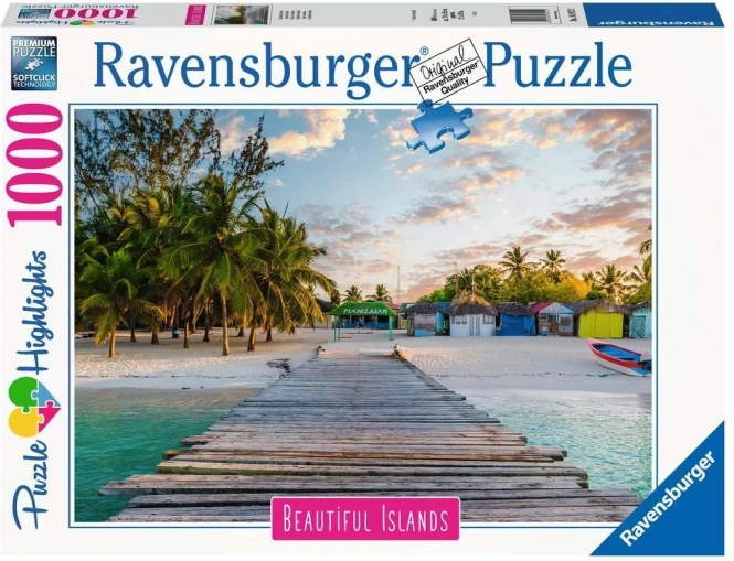 Oplev skønheden på Maldiverne med Ravensburger puslespil på 1000 brikker, som byder på levende farver, præcis udstansning og perfekt pasform. Ideelt til afslapning og fælles hygge fra 14 år.