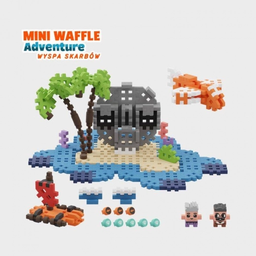 Tag på et pirat-eventyr med byggesættet Mini Waffle Skatteøen. I æsken finder du 148 dele, 2 figurer (Bruce og Lucky Chuck), en 40-siders vejledning og mulighed for at bygge i 2D og 3D. Klodserne er lavet af et blødt og sikkert materiale, produceret med fokus på miljøet, og de udvikler kreativitet, rumlig forestillingsevne og samarbejde hos børn fra 4 år.