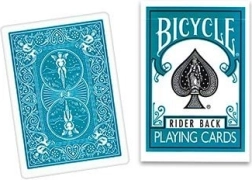Bicycle-kort har været blandt de mest anerkendte i verden siden 1885. Den unikke papirkvalitet og den specielle Air‑Cushion Finish sikrer glat glideevne, let blanding og længere levetid. Den nye udgave med turkis bagside og æske fanger øjet ved første blik og egner sig perfekt til visuelle effekter.