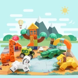 Deltag i safari-eventyret og byg din egen sjove park. Sættet indeholder et puslespil til at opbygge parken med en sø og buske.