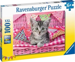 Oplev premium RAVENSBURGER puslespil med motiv af en sød killing. Sættet med 100 XXL brikker er ideelt til børn fra 5 år og tilbyder høj kvalitet, antirefleks overflade og præcise brikker for en glidende læggeoplevelse. Takket være SoftClick-teknologien passer brikkerne perfekt sammen, og læring bliver til sjov, der udvikler logik, tålmodighed og iagttagelsesevne.