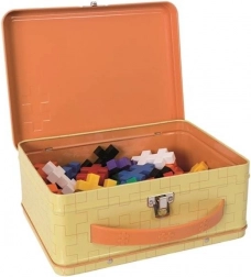 Pakken indeholder en robust metalkuffert med hank og lås, der holder klodserne samlet og gør dem lette at transportere og opbevare. Børnene har dermed byggesættet lige ved hånden – derhjemme, på udflugter og hos bedsteforældre. Den farverige palet af basisfarver indbyder til uendelige idéer og lege. Bemærk: farverne på delene kan afvige fra billederne.