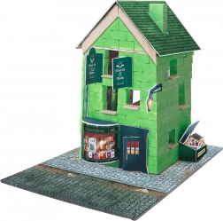 Sættet er designet med omtanke for naturen: det indeholder op til 95 % naturlige materialer og færre plastdele. Byg fra fundamentet til den stilfulde facade, tilføj mos, småsten og skilt, og giv udstillingen på hylden en unik karakter. Kombineres perfekt med andre sæt i BRICK TRICK HARRY POTTER-serien for at skabe hele Diagonalstræde og omgivelserne ved Hogwarts.