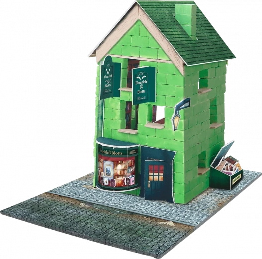 Skab et stykke af troldmandsverdenen derhjemme – den ikoniske boghandel Flourish and Blotts. BRICK TRICK HARRY POTTER byggesættet bruger ægte mini-mursten, træplanker og kartondekorationer, som giver et detaljeret og realistisk resultat. Limen er vandopløselig, så du kan skille modellen ad og bygge den igen når som helst.