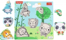 Dette kvalitets-træpuslespil med officiel licens fra FISHER-PRICE giver børn sjove junglemotiver og intuitiv læring. Basen med fræsede omrids og sort-hvid grafik viser, hvor hver brik hører til, så børnene nemt finder rundt og får glæde ved at lykkes.
