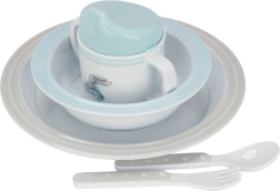 Skridsikkert gummi på bestikket sikrer et fast greb på bordet, hvilket er ideelt til små børn, der vil spise selv.