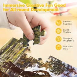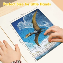 Det dobbelt-sidede puslespil i æg fra DINO EGGs Collection af CubicFun tilbyder dobbelt så meget sjov. På den ene side finder du en illustration af en pterosaur, mens den anden side har et abstrakt mønster med dinosaurfossiler.