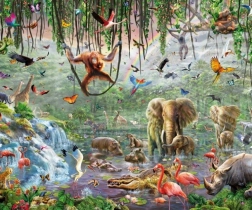 Puslespil 33.600 brikker, Wild Life Panorama Holdbart, veludformet, med en solid beskyttende overflade og i elegante farver – holder i mange år. Perfekt som gave! Puslespillet er pakket i 10 poser, hver med 3.360 brikker