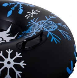 Den oppustelige runde snetube med stilfuldt vinterprint af snefnug er et fremragende valg for både små og store sneentusiaster. De robuste sidehåndtag giver tryghed og kontrol under kørslen, mens det holdbare PVC og den gennemtænkte form sikrer hurtig glideevne og masser af sjov.