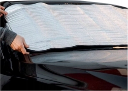 Skærmen fastgøres let på forruden og kan efter brug foldes sammen til en kompakt størrelse.