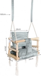 Takket være det minimalistiske design og de kvalitetsmaterialer passer den perfekt til et moderne interiør. Monteringen er nem, og reb med en diameter på 10 mm sikrer pålidelig ophængning. Gyngen er beregnet til børn, der allerede kan sidde selv, med en maks. belastning på op til 25 kg.